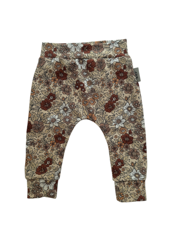 Broekje ‘Artistieke Bloem Beige’Broekje van beige katoentricot met grote bloemenprint.