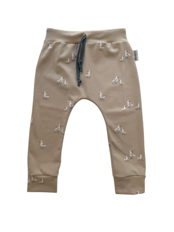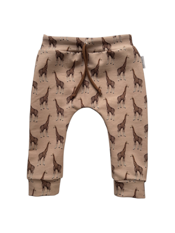 De harembroekjes hebben alleen zijnaden, waardoor de print op het broekje mooi doorloopt. De broekjes zijn te bestellen in maat 50 tot 98. Ze staan het mooist bij luierkontjes. Bij wat grotere kinderen raden we het joggingbroekje aan.