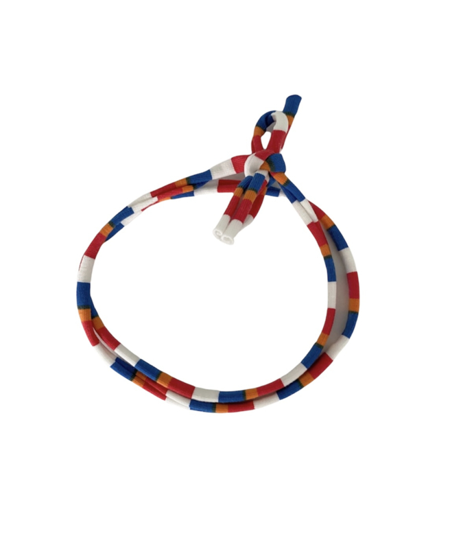 Koningsdaghaarbandje smalSmal knoophaarbandje in de kleuren van de vlag. Eén maat, zelf te strikken en evt korter te knippen.