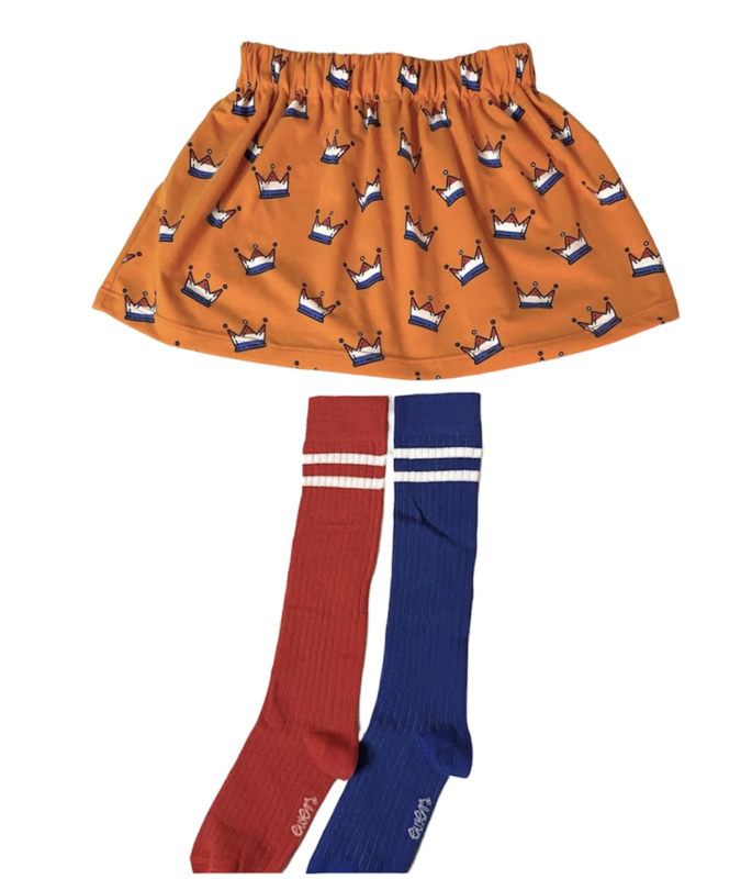 KoningsdagkniekousenDraag onder het Koningsdagrokje een rode én een blauwe kniekous! Maakt het plaatje helemaal compleet. Té leuk!